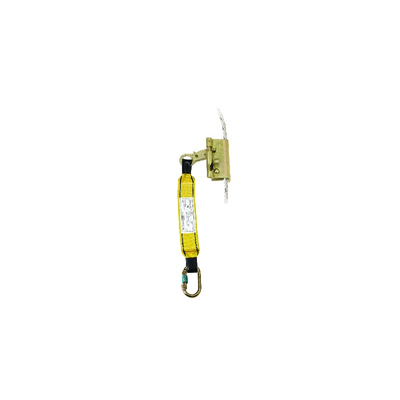 Dispositivo anticaídas deslizante ROP-STOP Sekuralt sobre cuerda torcida de ø14mm a 16mm + cinta de extensión + mosquetón 981. Su sistema de abertura simple y fácil permite montar y desmontar el aparato sobre la cuerda en cualquier tramo de ella, disponiendo de un sistema de seguridad automático.