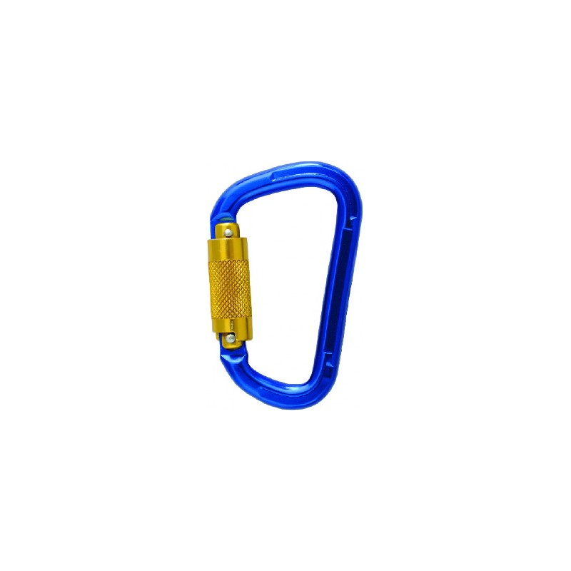 Mosquetón de aluminio forjado, color azul, cierre automático 1/4 vuelta, abertura 22mm.